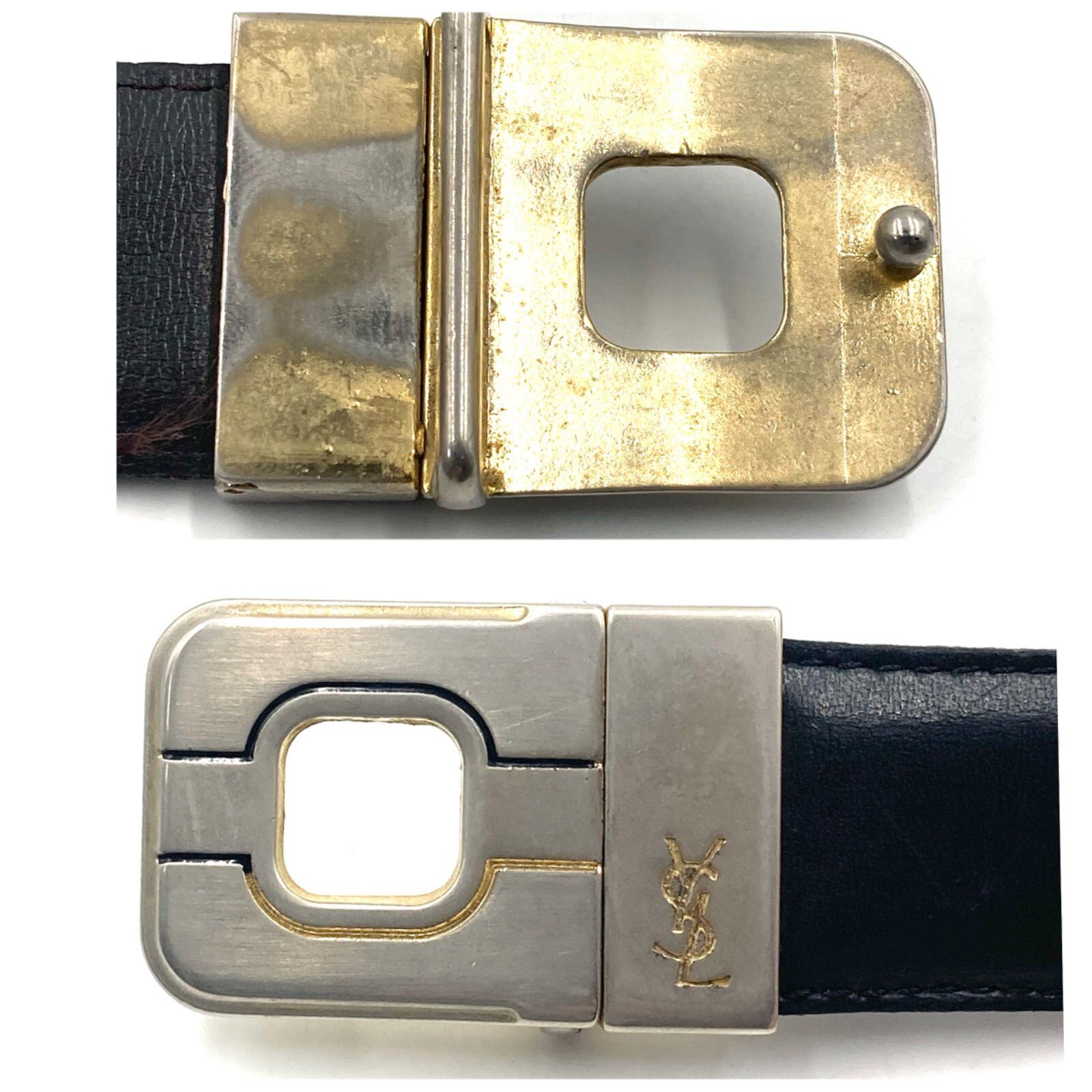 Yves saint Laurent イヴサンローラン レザーベルト ロゴバックル YSL ブラック フランス製 ウエスト78~88cm メンズ