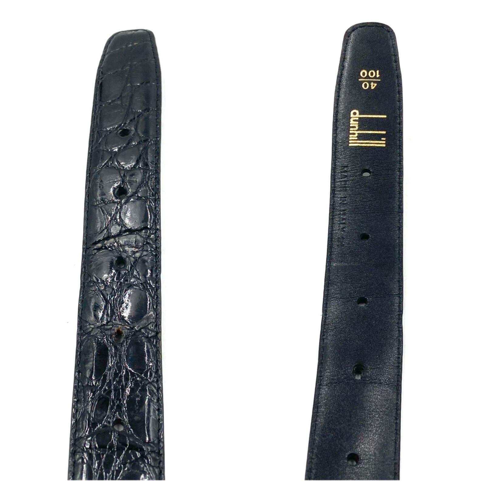 ■美品■dunhill ダンヒル レザーベルト クロコ ロゴバックル ブラック ゴールド金具 ウエスト81~93cm メンズ ビジネス 高級