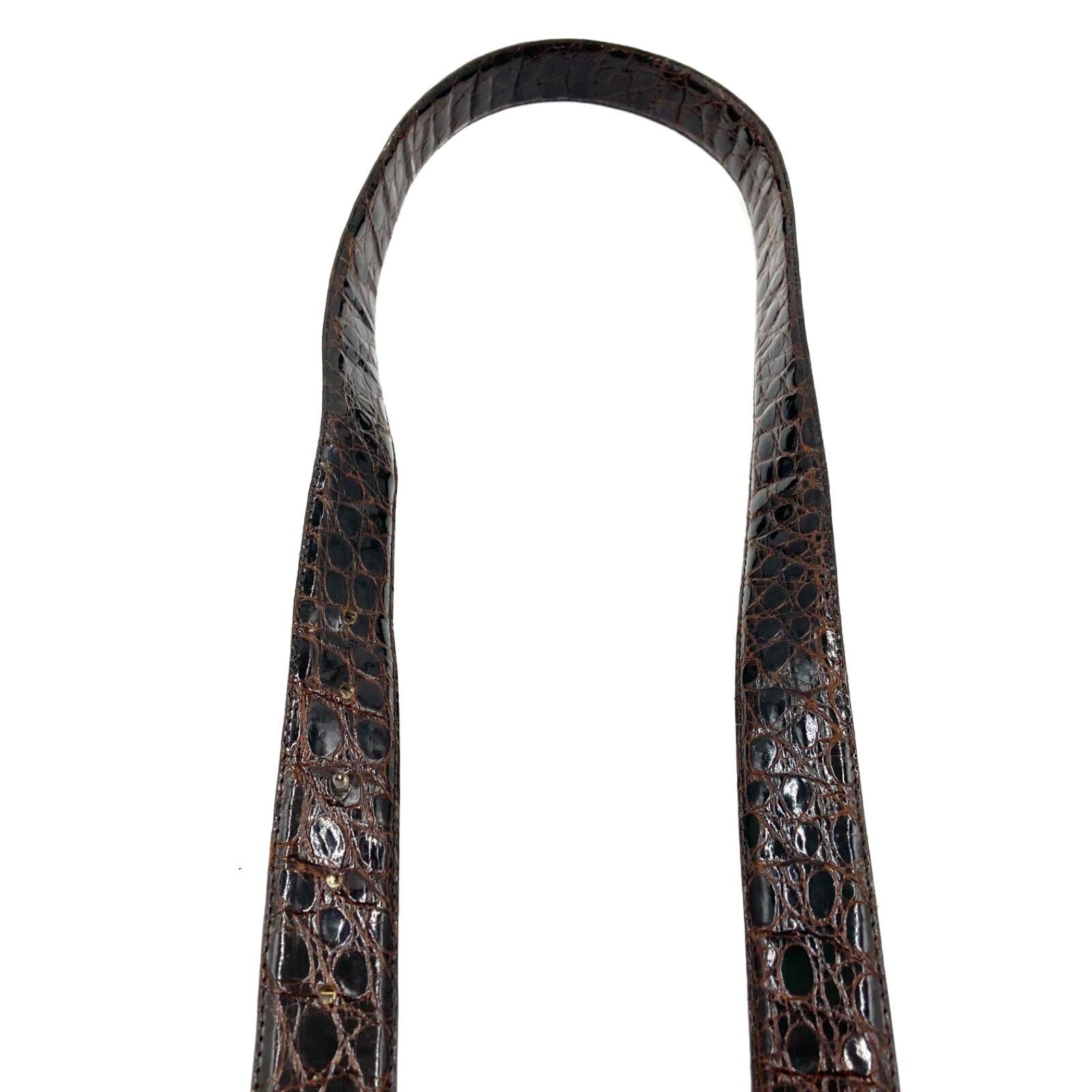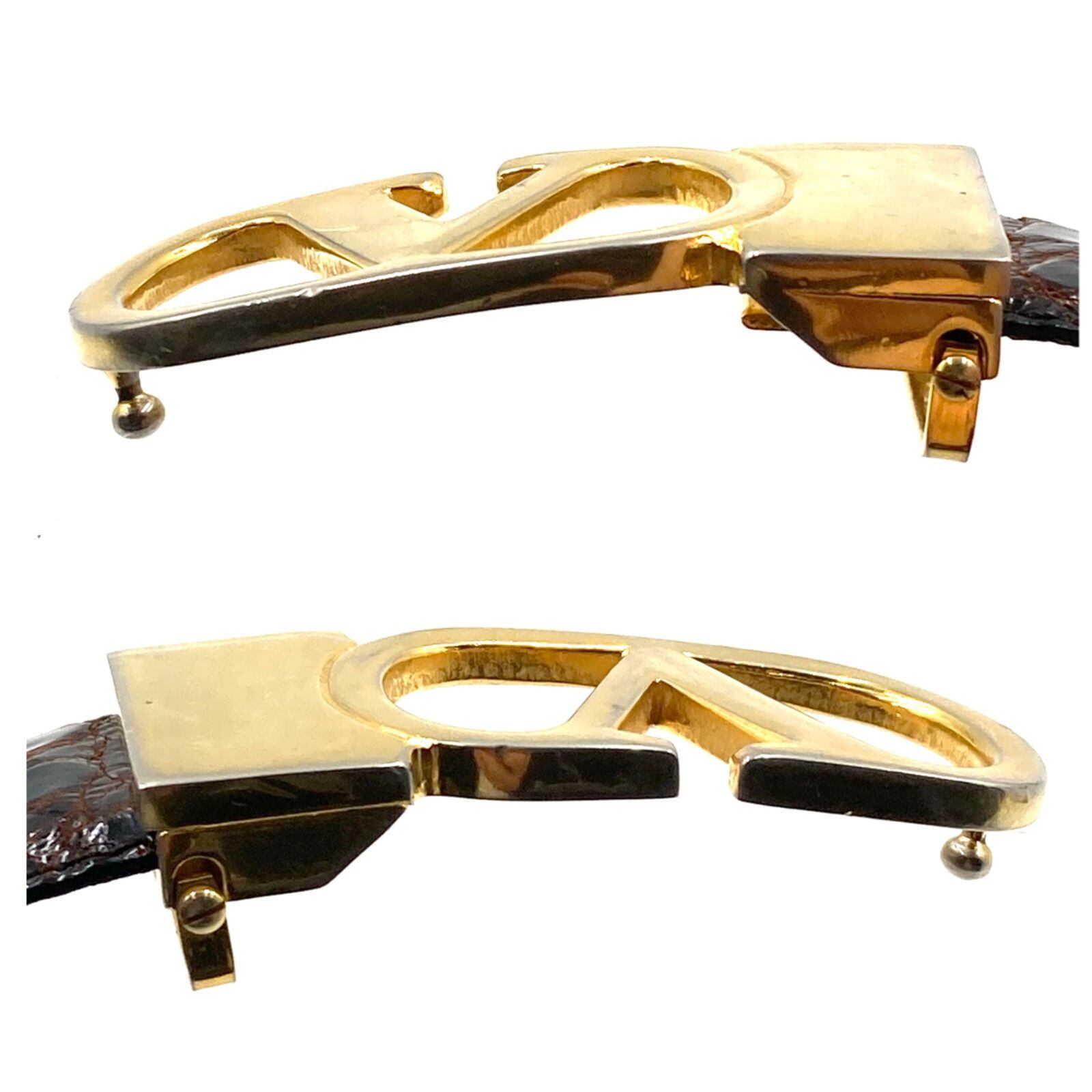 ■良品■VALENTINO GARAVANI ヴァレンティノガラヴァーニ Vロゴバックル レザーベルト クロコ ダークブラウン ゴールド金具 イタリア製 ウエスト80~90cm メンズ ビジネス 高級 ラグジュアリー | ブランドオキナ