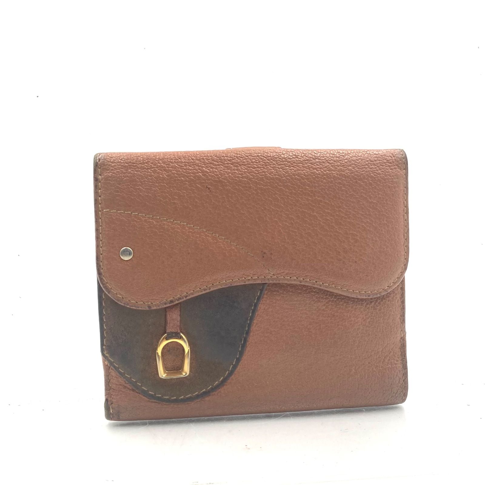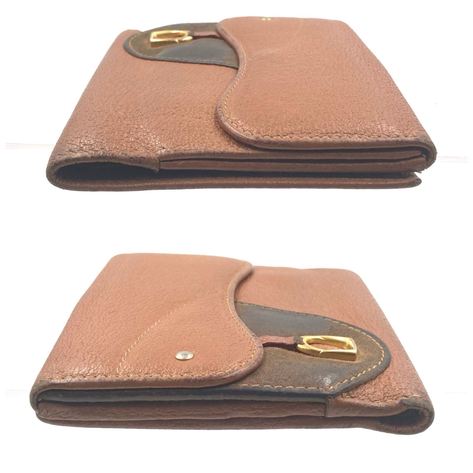 GUCCI グッチ 金具付きサドル型折り財布 三つ折り レザー ブラウン ゴールド金具 イタリア製 刻印あり 高級 ハイブランド ラグジュアリー