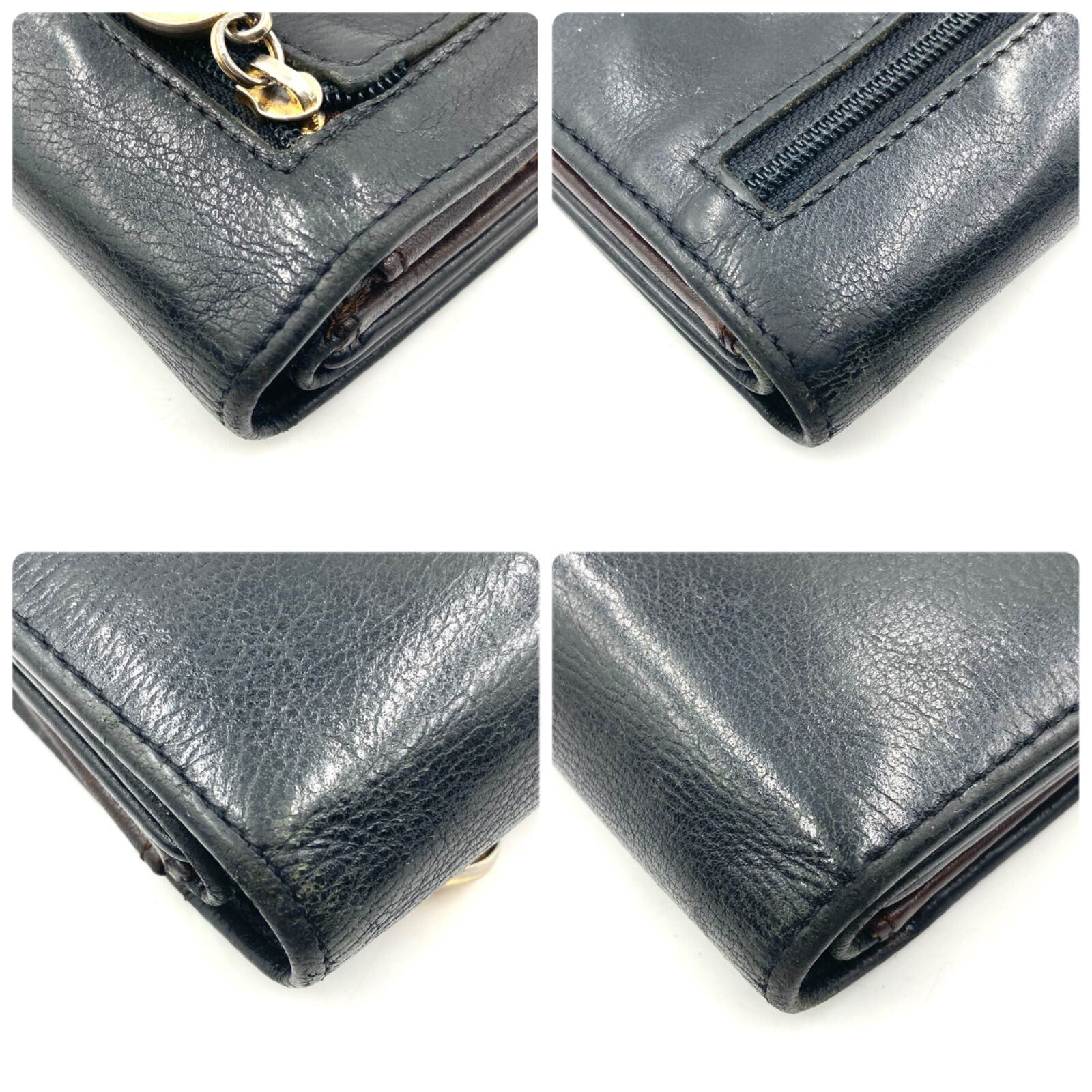 ■稀少■Christian Dior クリスチャンディオール CDロゴ金具 長財布 ロングウォレット 二つ折り ブラック×内側ブラウン ゴールド金具 スペイン製 レザー 本革 ラグジュアリー 高級 ハイブランド | ブランドオキナ