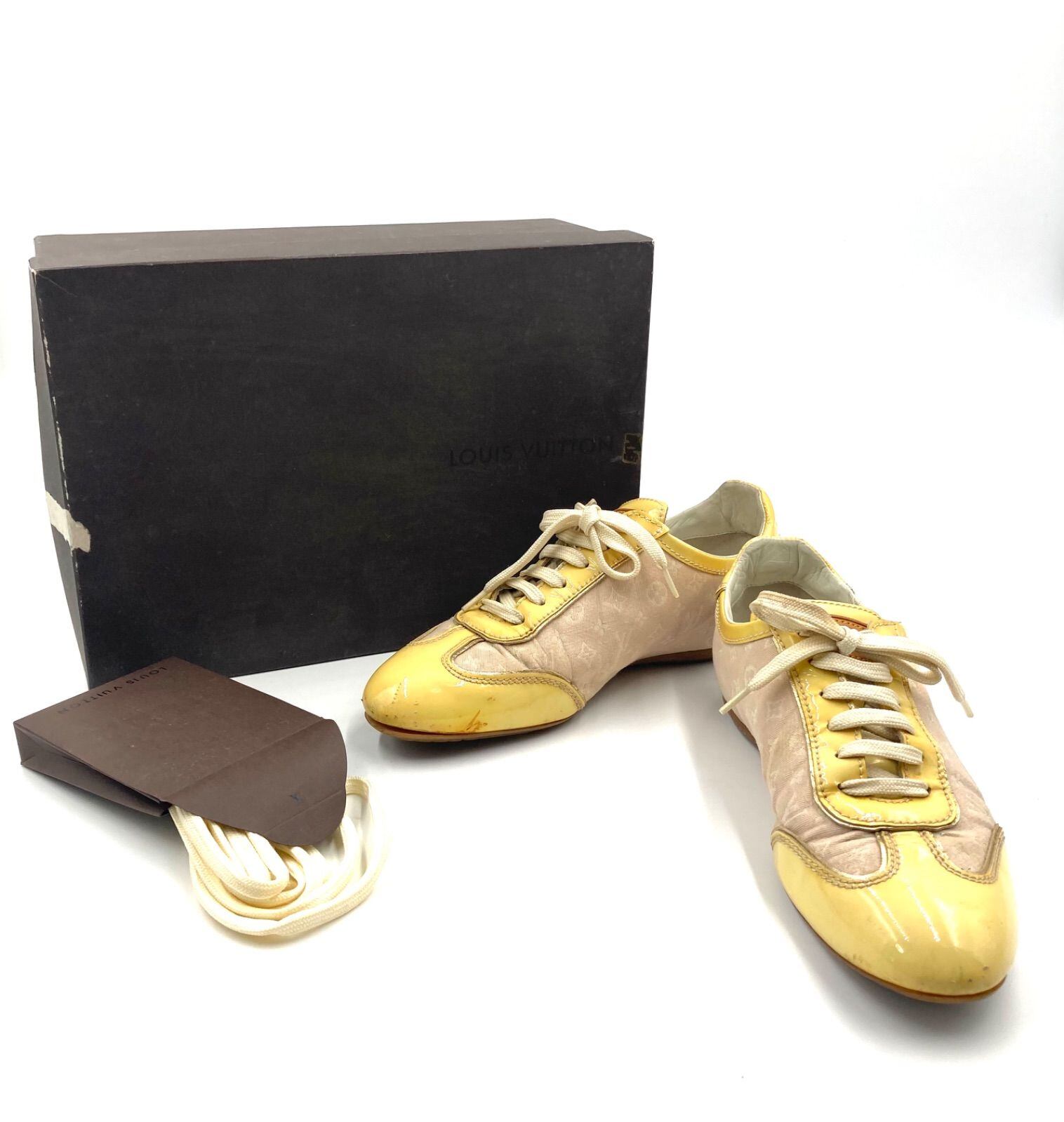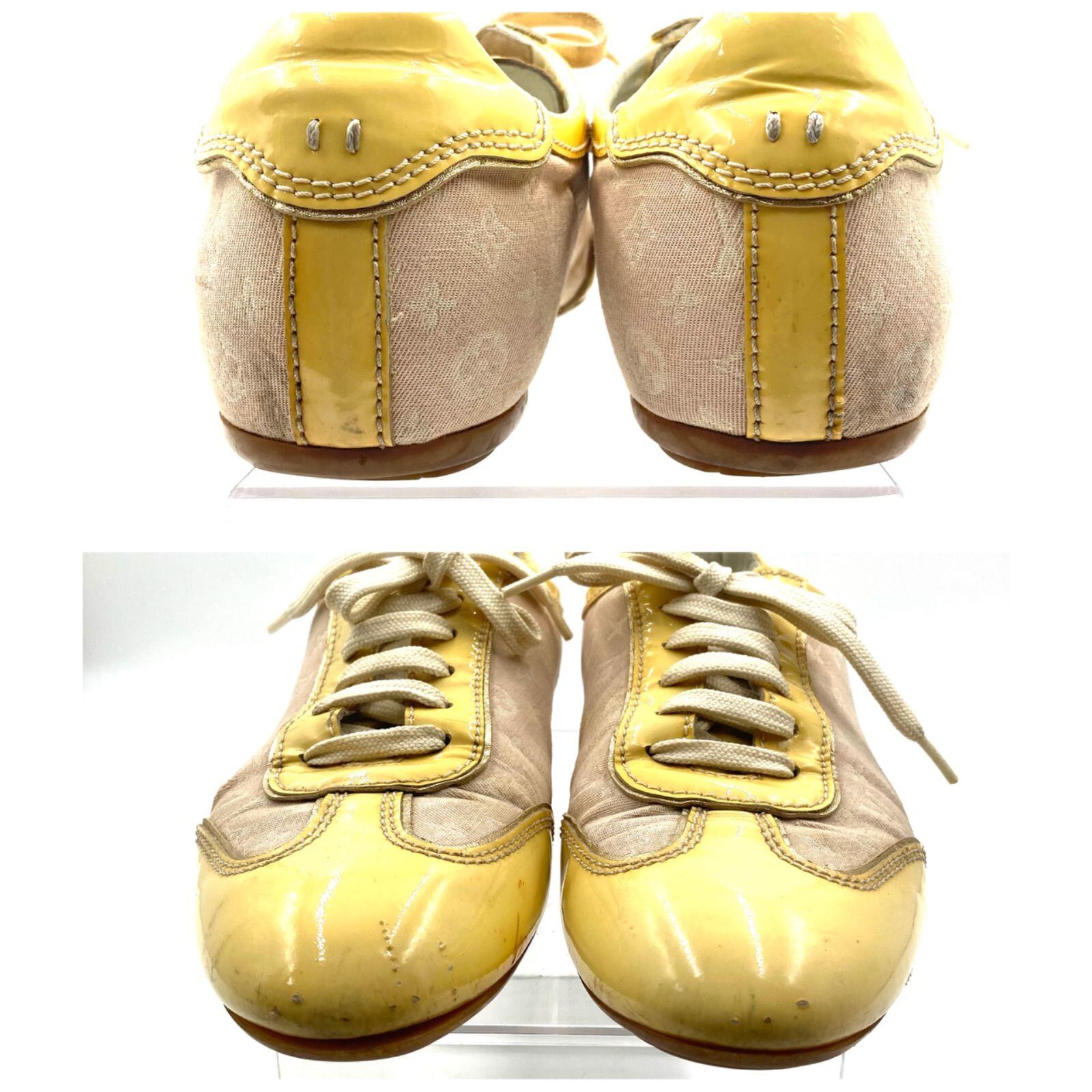 LOUIS VUITTON ルイヴィトン モノグラムミニ ローズ スニーカー キャンバス×レザー エナメル パテントレザー イエロー×ピンク サイズ36(23cm程度) レディース 箱、スペア紐付き ラグジュアリー 高級 ハイブランド ラグスト カジュアル | ブランドオキナ