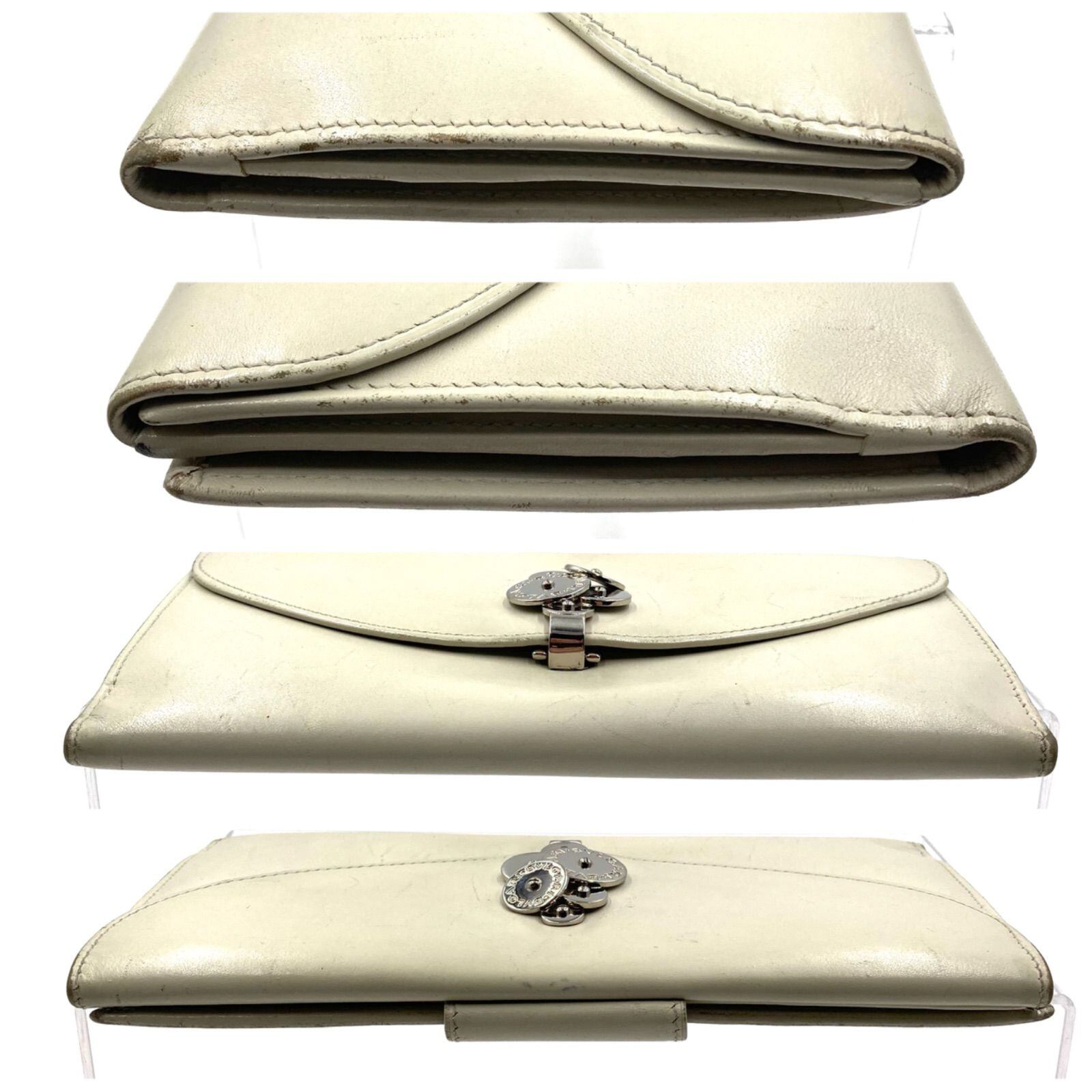 ■稀少■BVLGARI ブルガリ CICLADI チクラディ 長財布 ロングウォレット レザー 本革 ホワイト系アイボリー フラワーモチーフ シルバー金具 イタリア製 刻印あり レディース | ブランドオキナ