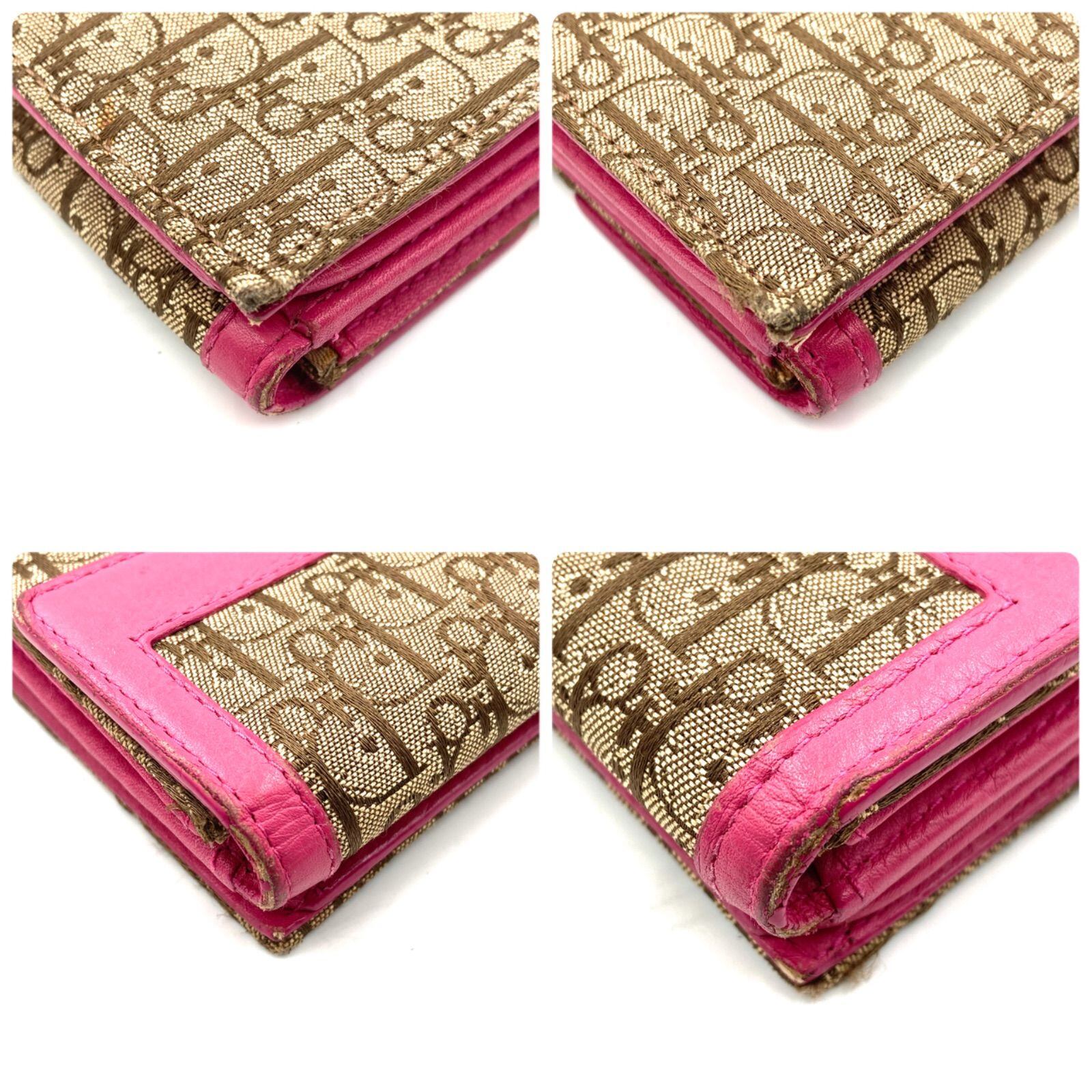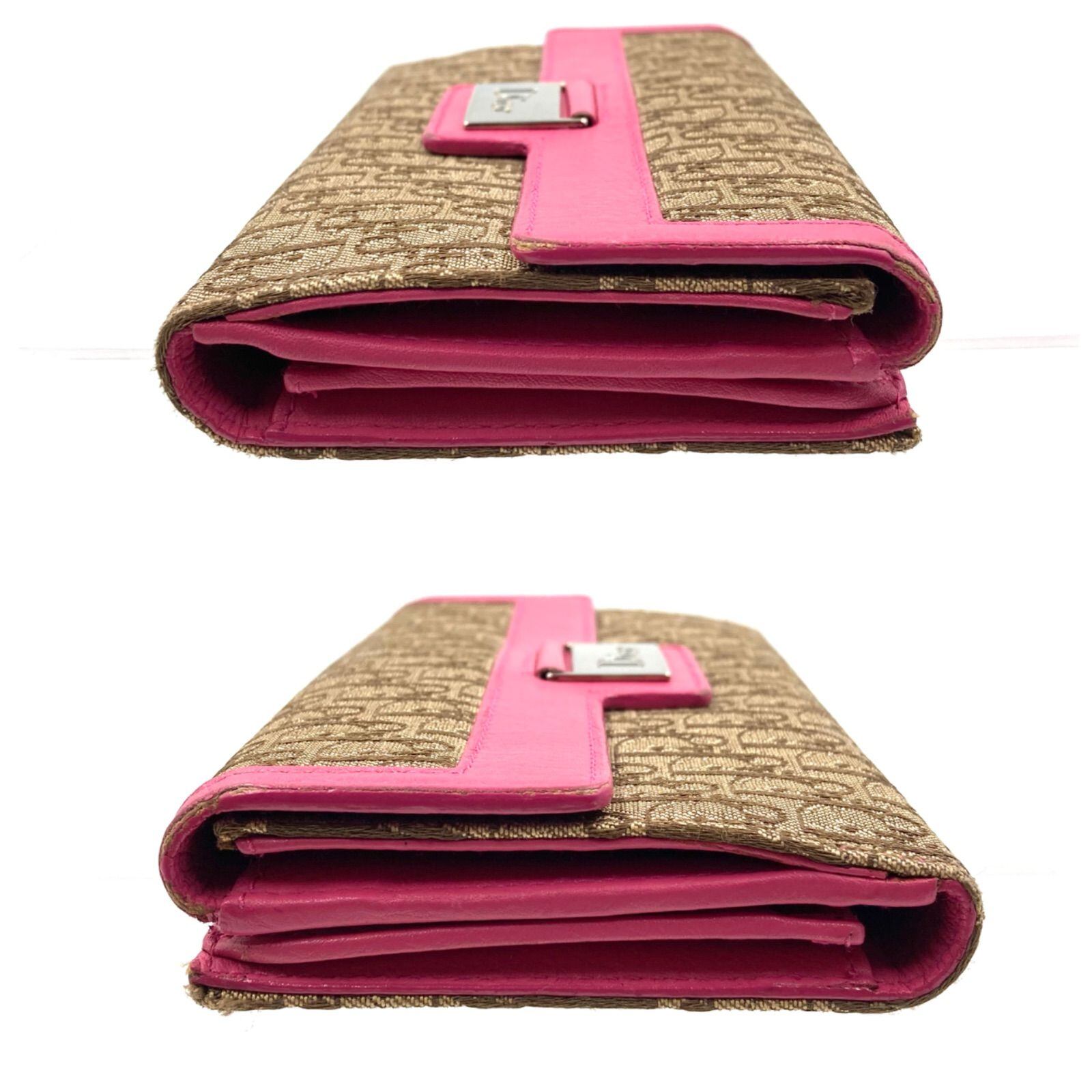 ■良品■Christian Dior クリスチャンディオール トロッター ロゴグラム 長財布 ロングフラップウォレット キャンバス×レザー ベージュ×ピンク ロゴプレート シルバー金具 イタリア製 刻印あり 02-LU-0095 ギャランティー、保存袋、箱付き | ブランドオキナ