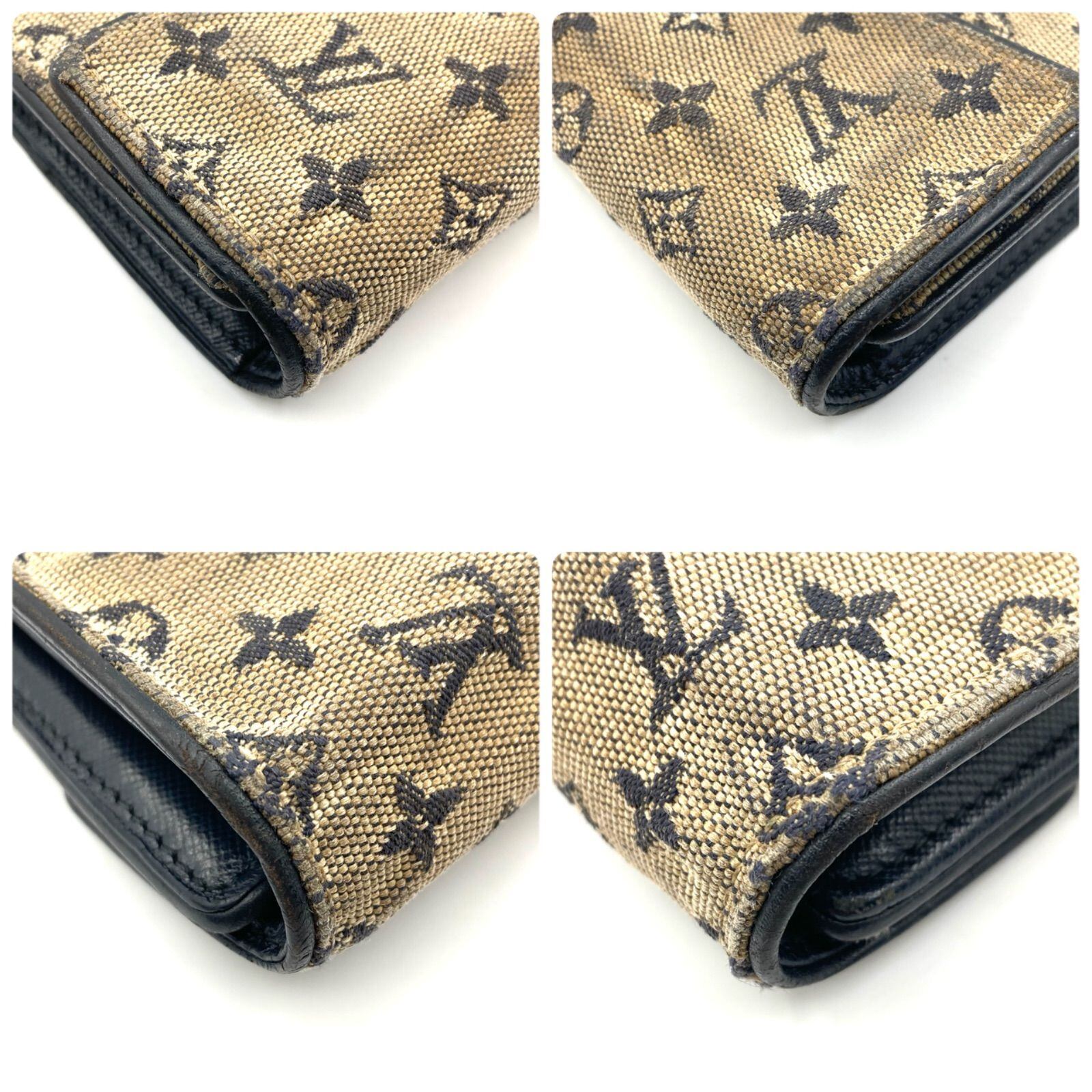 LOUIS VUITTON ルイヴィトン モノグラムミニ ベージュ系 ポルトモネ ビエ カルトクレディ 三つ折り財布 キャンバス×レザー 内側ネイビー ゴールド金具 フランス製 刻印あり 2004年製 ラグジュアリー 高級 ハイブランド | ブランドオキナ