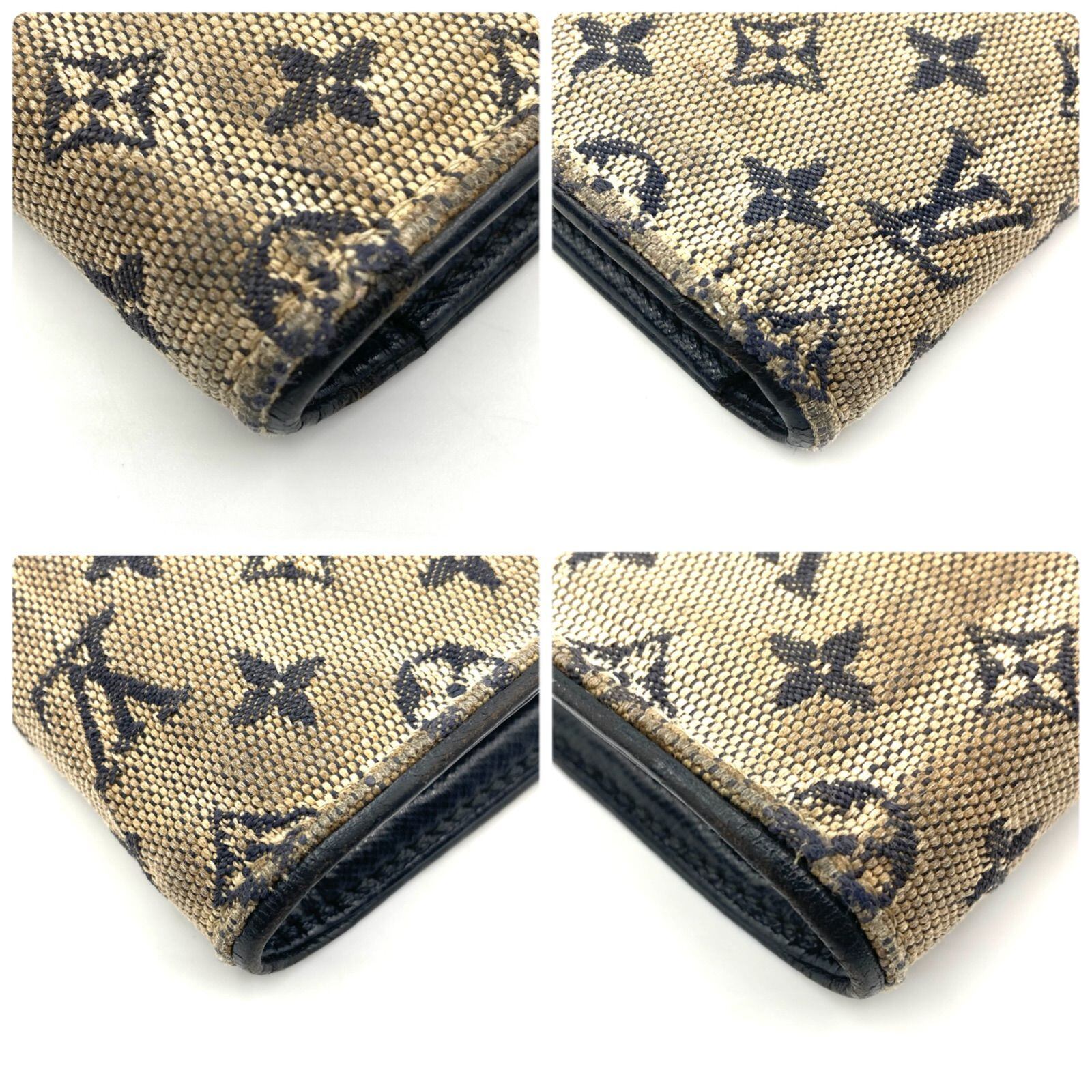 LOUIS VUITTON ルイヴィトン モノグラムミニ ベージュ系 ポルトモネ ビエ カルトクレディ 三つ折り財布 キャンバス×レザー 内側ネイビー ゴールド金具 フランス製 刻印あり 2004年製 ラグジュアリー 高級 ハイブランド